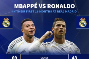姆巴佩、C罗效力皇马前16个月数据:
