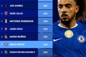 体育资讯10月14日讯 德国转会市场盘点了五大联赛零进球出场比赛最多球员排行,昂热的巴姆巴以154场居首,利物浦的乔-戈麦斯以151场位居次席,而切尔西的古斯托则以118场位居第7位。