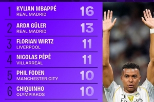 1.姆巴佩(皇马):16