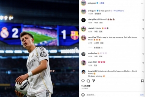 他也在赛后通过社媒晒出自己的比赛照,并配文:“最伟大的爱,马德里前进!”