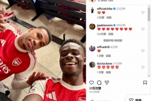 在社交媒体上,萨卡晒出更衣室照片庆祝来之不易的胜利,英格兰边锋笑容灿烂显然对赛果非常满意。
