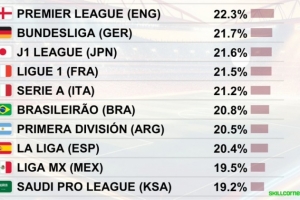 1、英超:22.3%