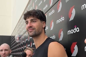 小吧今天在开拓者训练营结束后采访了开拓者球员阿夫迪亚。