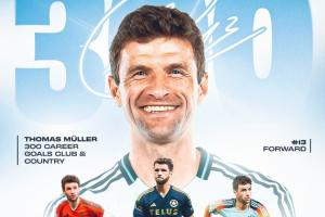 穆勒拜仁生涯756场250球,代表温哥华白浪5场5球,代表德国队131场45球。