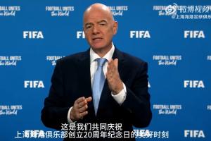 体育资讯12月25日讯 今天是上海海港足球俱乐部成立20周年的纪念日,上海海港官方微博晒出了国际足联主席因凡蒂诺发来的祝福。